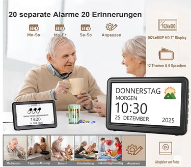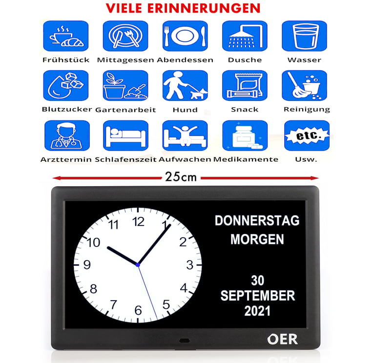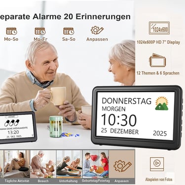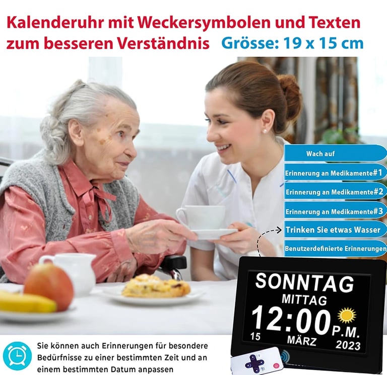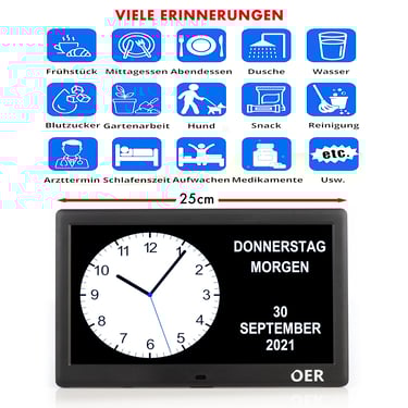 Demenzuhr Day Connect, digitale Kalenderuhr mit Tag, Datum und Uhrzeit, personalisierte Opt